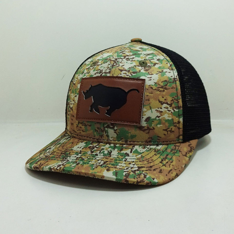Casquette de camionneur OEM Vietnam personnalisée 6 panneaux structurée Camouflage Casquette de sport camionneur personnalisée en cuir gravé patch pour hommes