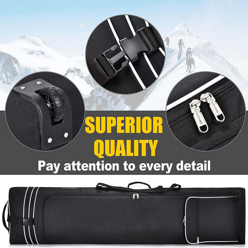 Sac de snowboard OEM étanche en polyester avec fermeture à crochet et roulettes pour 2+ planches, bottes et équipement de ski/snowboard
