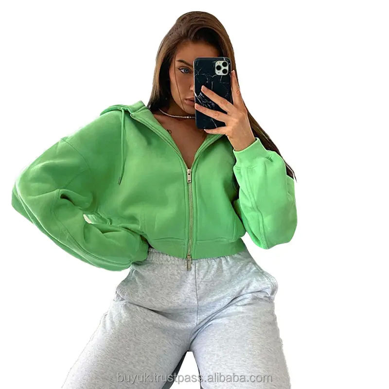 OEM vente en gros 2024 surdimensionné polyester fermeture éclair à capuche pour les femmes personnalisé fermeture éclair haut court cravate teinture insigne femme à capuche haut court