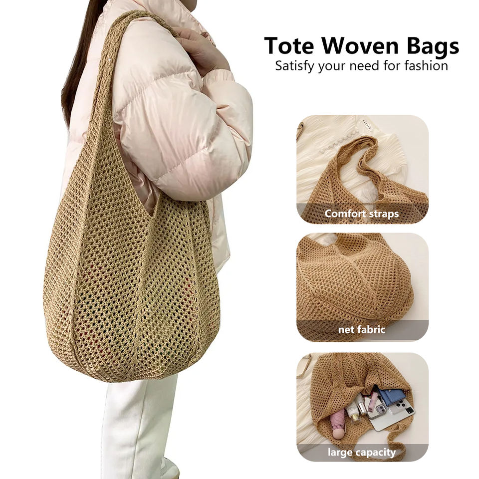 OEM Wholesale Bulk Multi-Color Handwoven Crochet Beach Tote Bag Large Woven Summer Shopping Bag for Women with Custom Logo