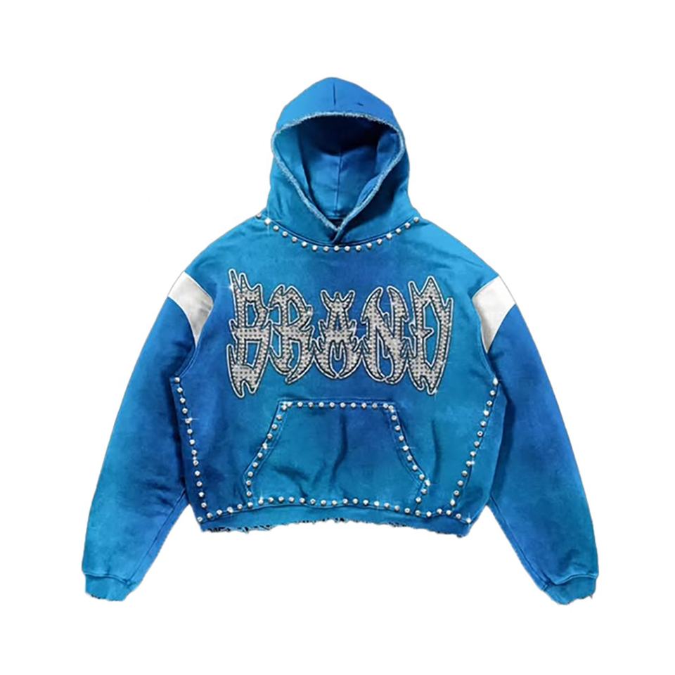 OEM Vente en gros Personnalisé Sweat-shirts streetwear d'hiver vintage pour hommes, effet vieilli, avec strass et délavage acide, 100% molleton de coton