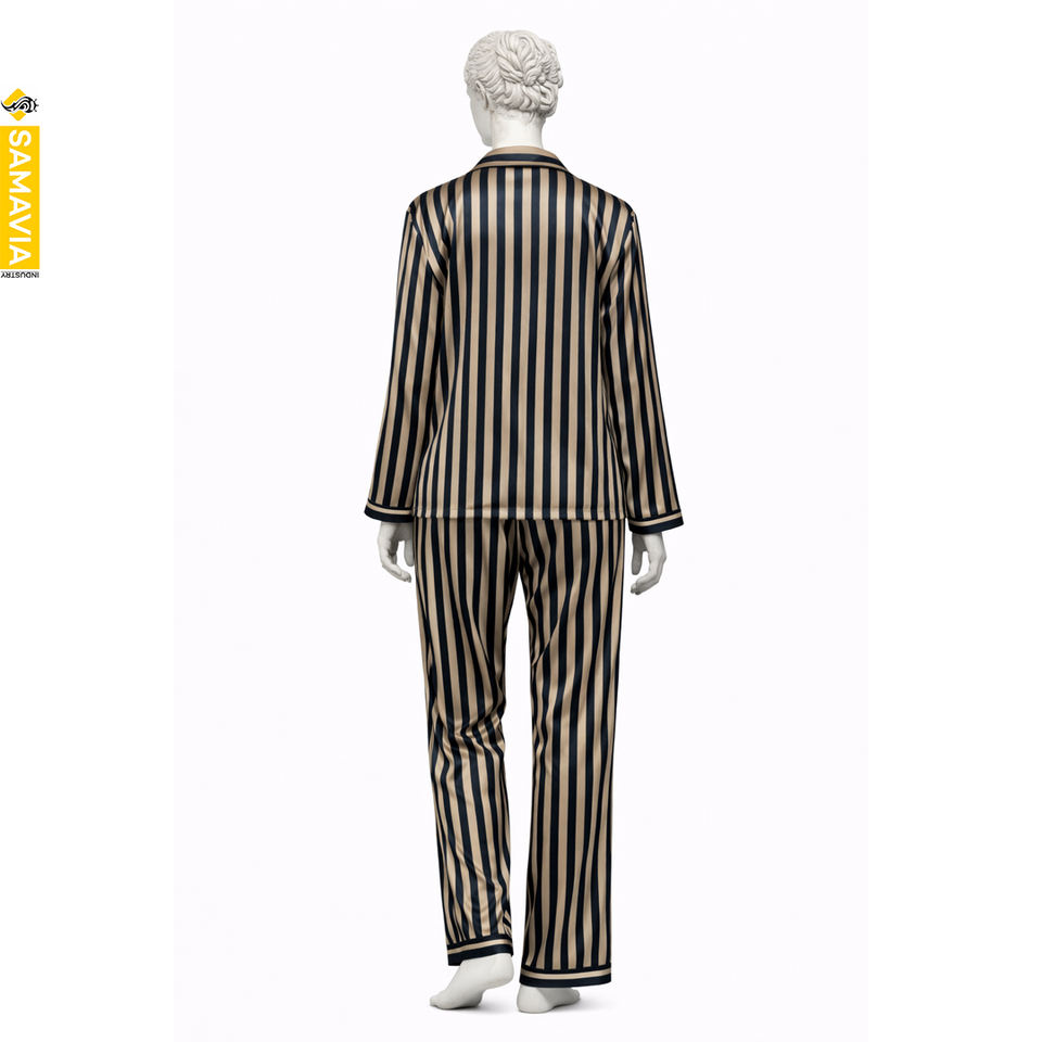Ensemble de pyjama en satin de soie à rayures colorées prêt à la production Samavia | Ensembles de vêtements de nuit pour femmes en coton respirant, quantité en gros, 2 pièces