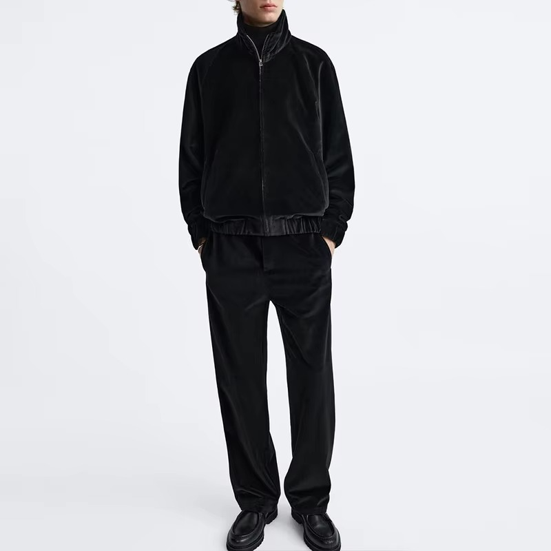 Veste bomber en velours noir de style universitaire, col montant, veste d'hiver pour hommes et femmes, logo personnalisé en gros OEM