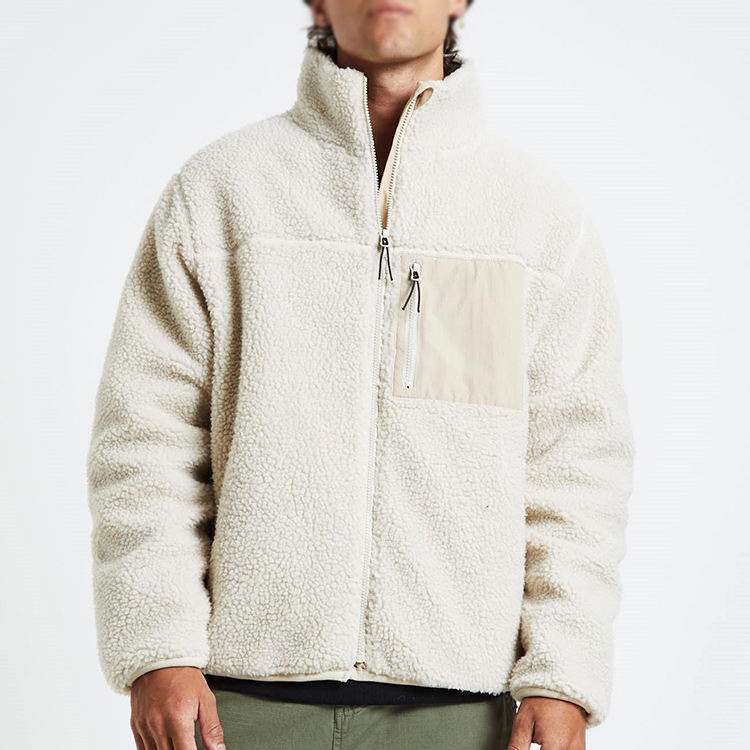 Veste polaire unisexe personnalisée en gros OEM, fermeture éclair, réversible, chenille sherpa, col montant