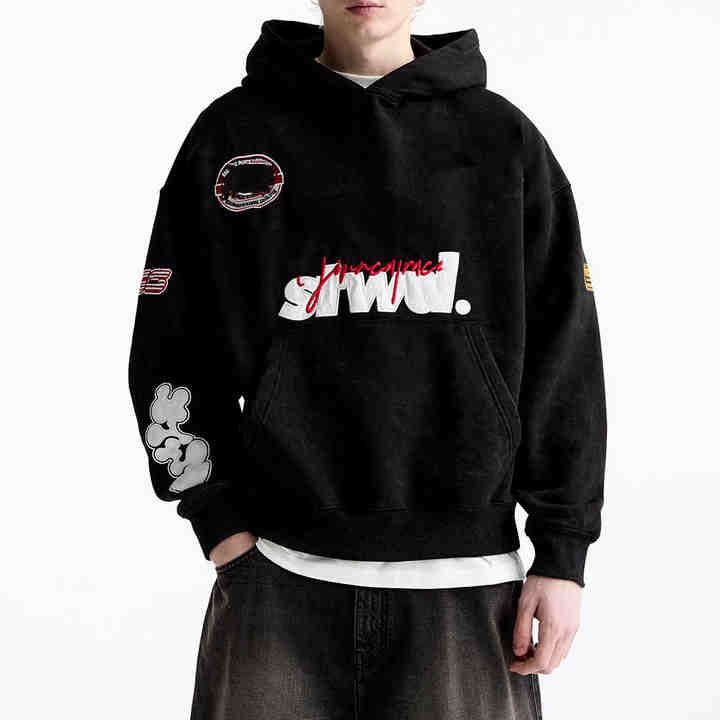 OEM Hiver Broderie Patch Hoodies Surdimensionné Hommes Hoodies & Sweatshirts 500GSM 100 Coton Hoodie Hommes