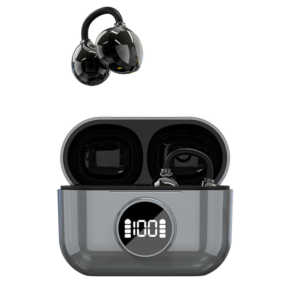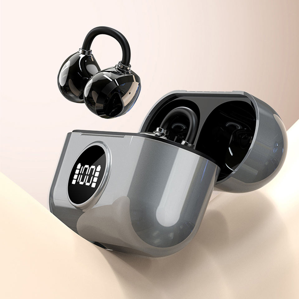Écouteurs TWS sans fil OEM BT 5.4 à clip d'oreille avec puce Bluetrum intégrée, qualité sonore stéréo, affichage numérique, étanchéité IPX-4, AAC pour