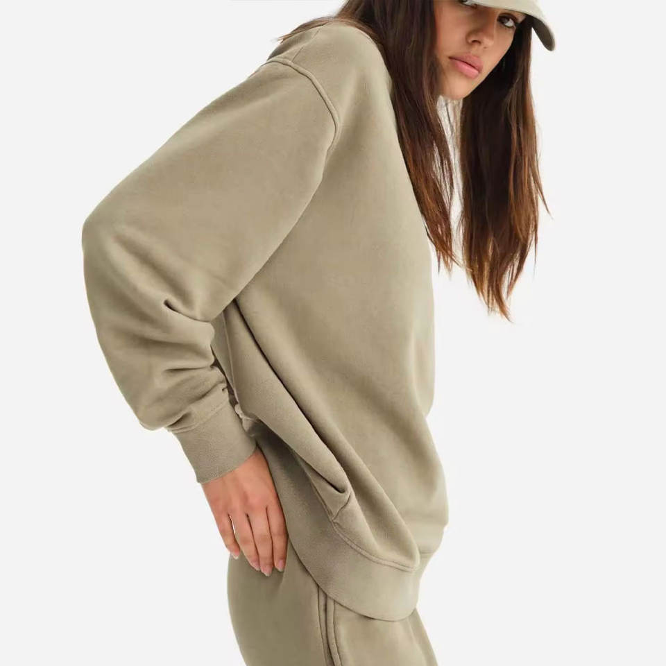 Pulls et sweat-shirts à col rond en polaire lavée pour femmes grandes tailles, OEM
