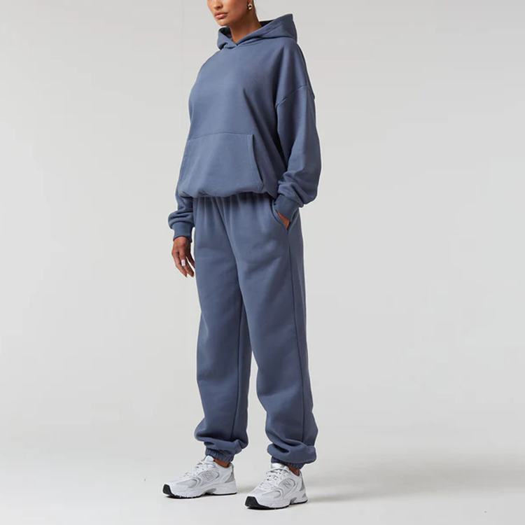 OEM femmes décontracté automne hiver 2 pièces ensemble surdimensionné long sweat à capuche pantalons de jogging imprimé extérieur grande taille sweat-shirt d'entraînement