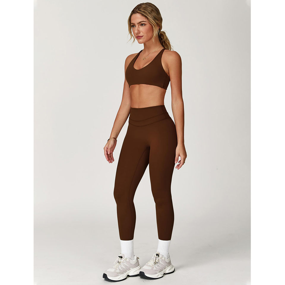 Ensemble de vêtements de sport pour femmes OEM, hiver, côtelé, uni, respirant, écologique, séchage rapide, spandex/polyester, fitness, entraînement, gym