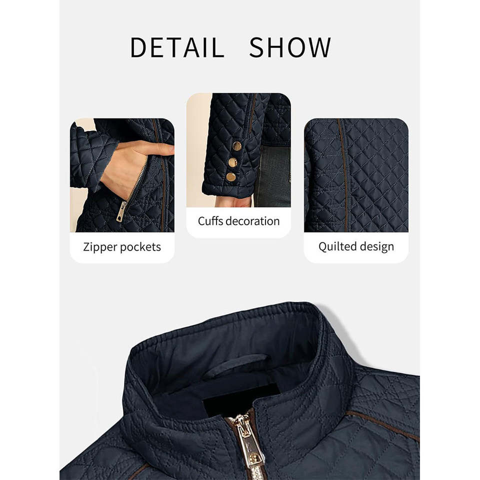 Veste matelassée légère imperméable à col montant brodée pour femmes OEM Fermeture éclair Automne Manteau rembourré