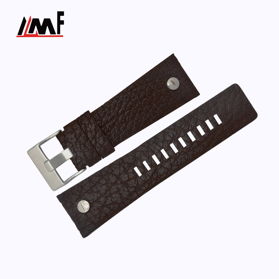 OEM et ODM Bracelet de montre en cuir de veau à rivets à la mode Bracelet de montre réglable en cuir de vachette de taille multiple