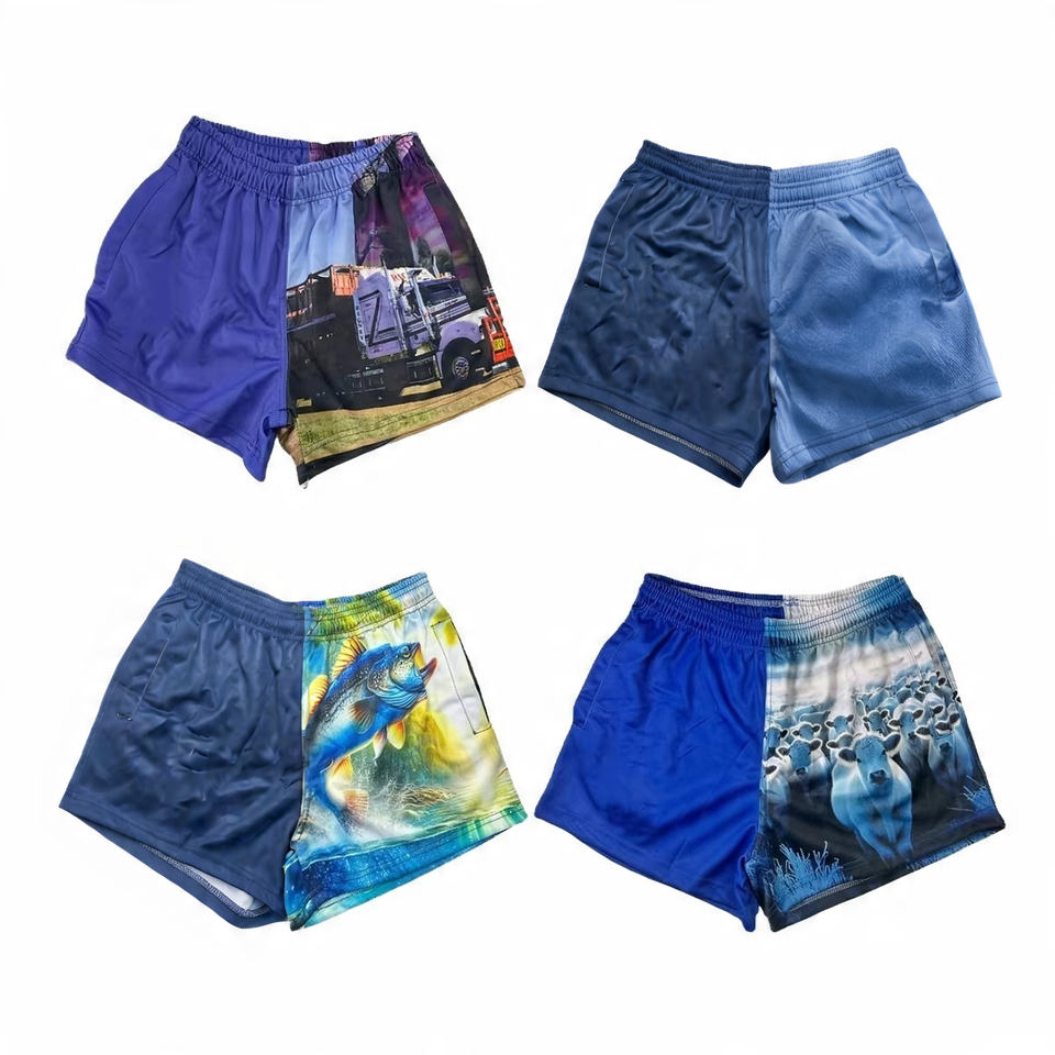 Short de football à sublimation personnalisée OEM Short d'été de rugby avec poches zippées Sublimation personnalisée pour homme
