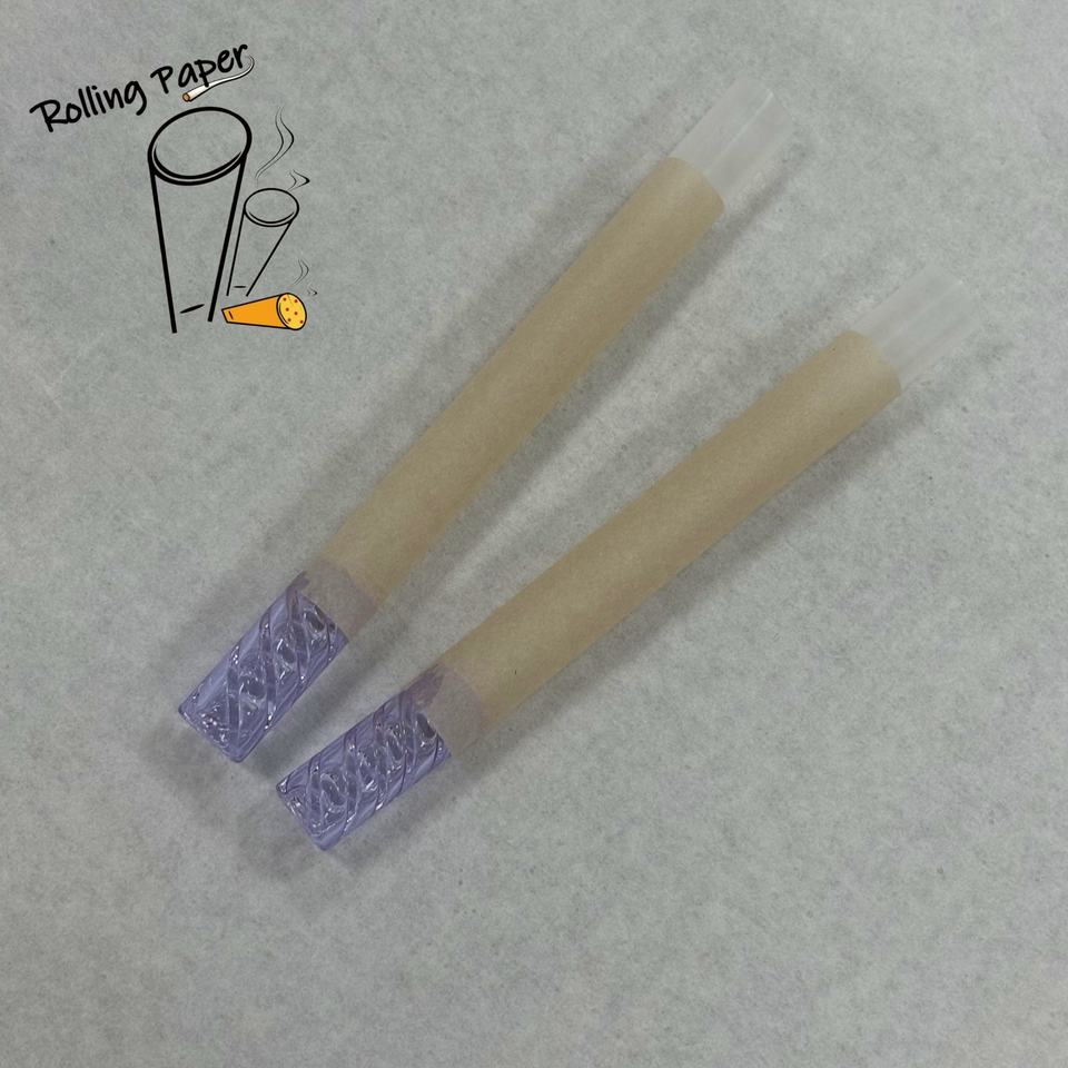 Tube à fumer en papier de riz non blanchi/blanchi sur mesure OEM, 10*30MM, spirale violette, embout en verre, avec une bonne sensation de fumée