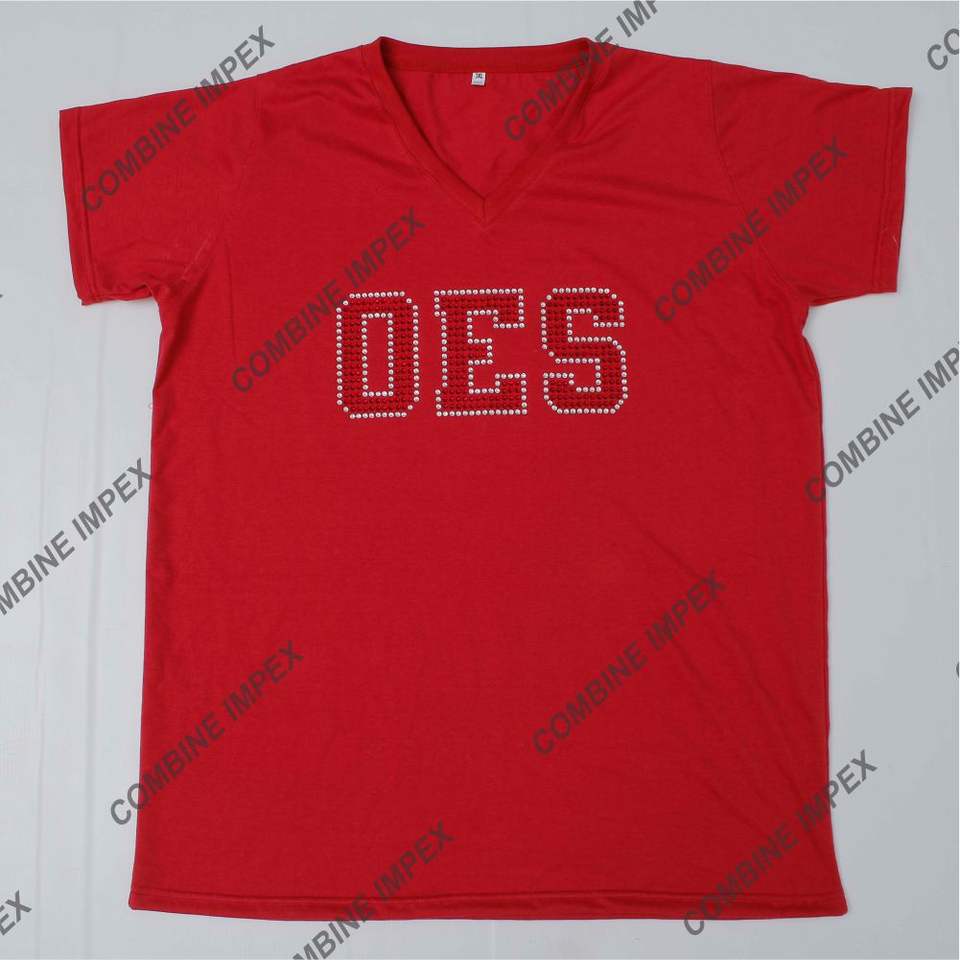 OES-T-shirt de luxe pour femmes, avec logo personnalisé, strass, polyester de haute qualité, col rond surdimensionné, design uni