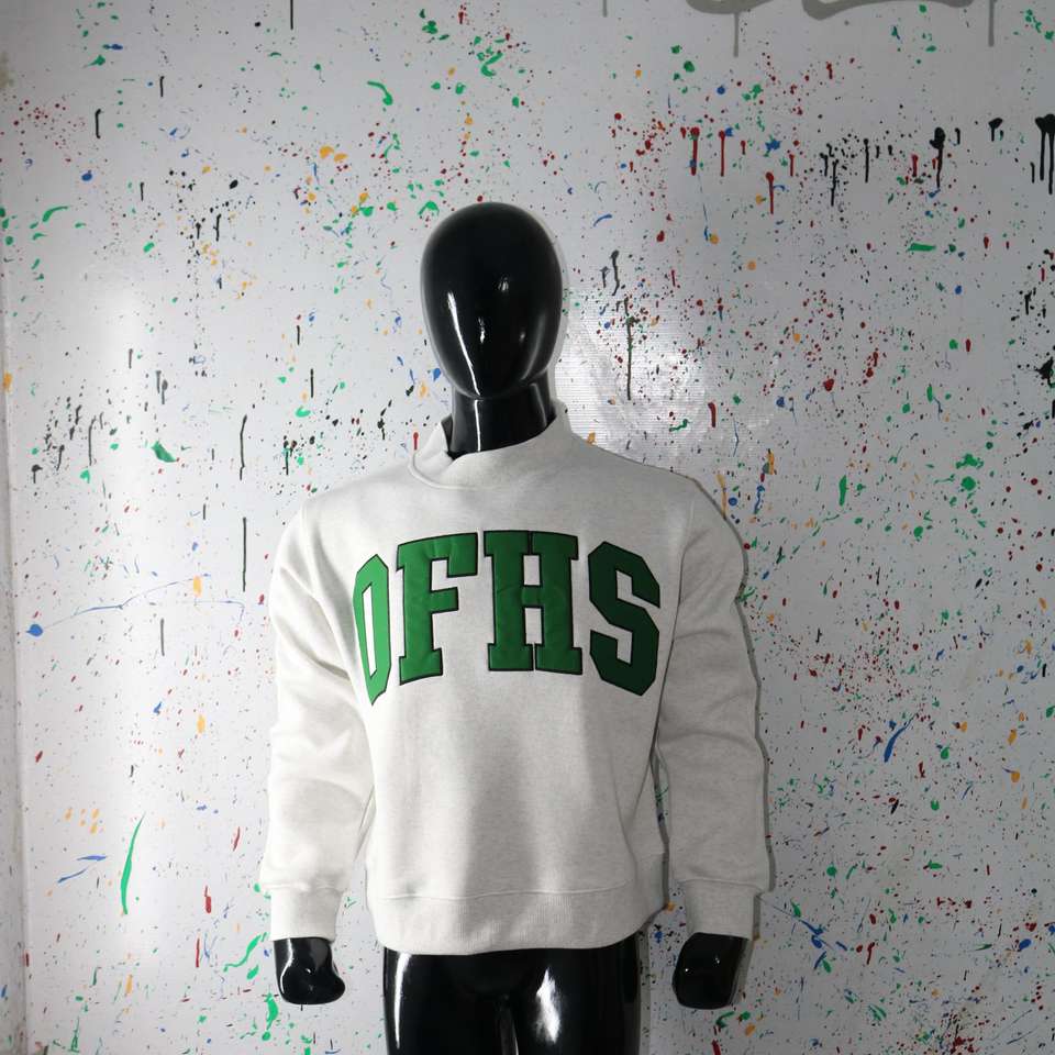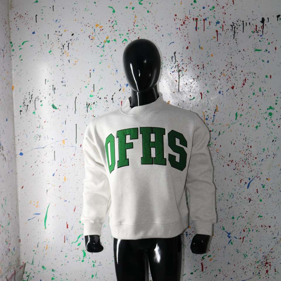Sweat-shirt à col montant OFHS WHITE 100% GREEN avec broderie appliquée, col large, CLUSH SPORTS