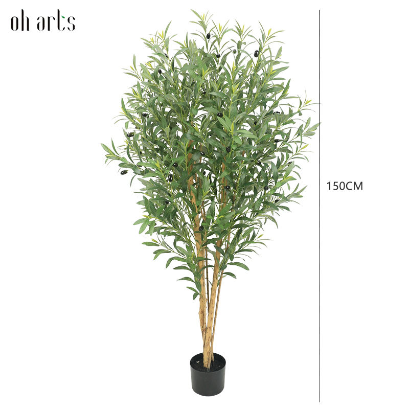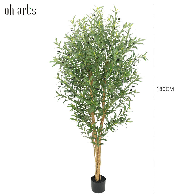 OH ARTS Plante artificielle de grande qualité, olivier artificiel avec bois véritable, décorations de Noël