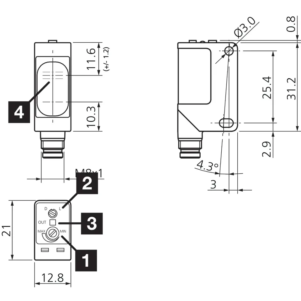 * Type:Retroreflective diffuse sensor with background suppression O-30