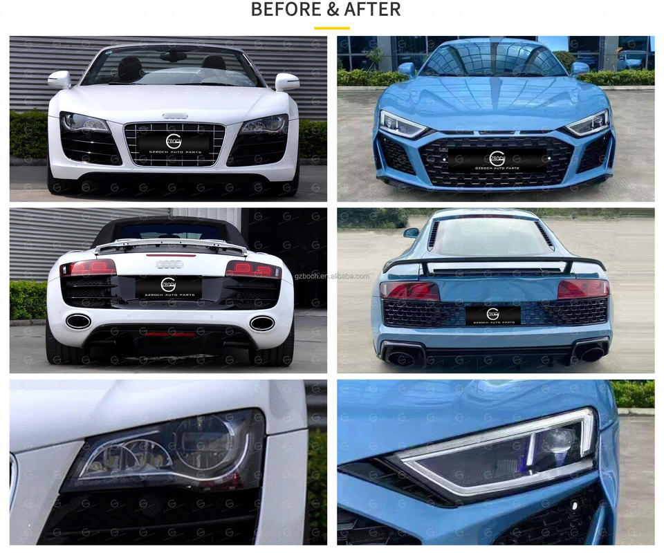 OId vers les nouveaux Kits de carrosserie R8 pour Audi 2007-2014 R8 mise à niveau vers 2022 + R8 voiture pare-chocs moteur capot jupes latérales Auto accessoires extérieurs