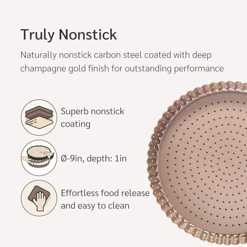 OKAY Moule à tarte antiadhésif de 10 pouces avec fond amovible | Moule à tarte ou quiche cannelé en acier au carbone, non toxique, sans PFOA ni BPA, écologique