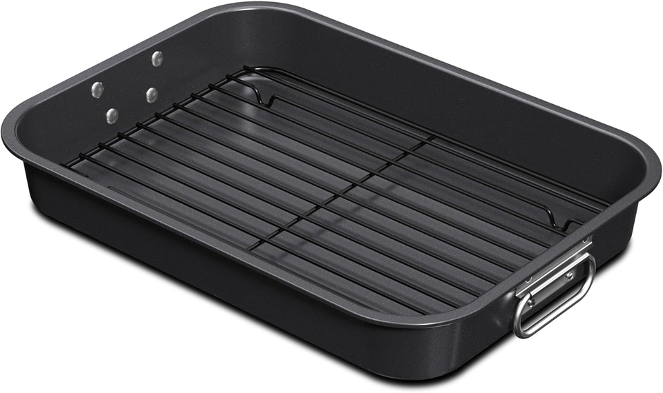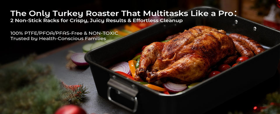 OKAY Roasting Pan with Rack 15 Inch Deep Roasting Pan Deep Baking Pan for BBQ Vegetable and Meat Roast Pan