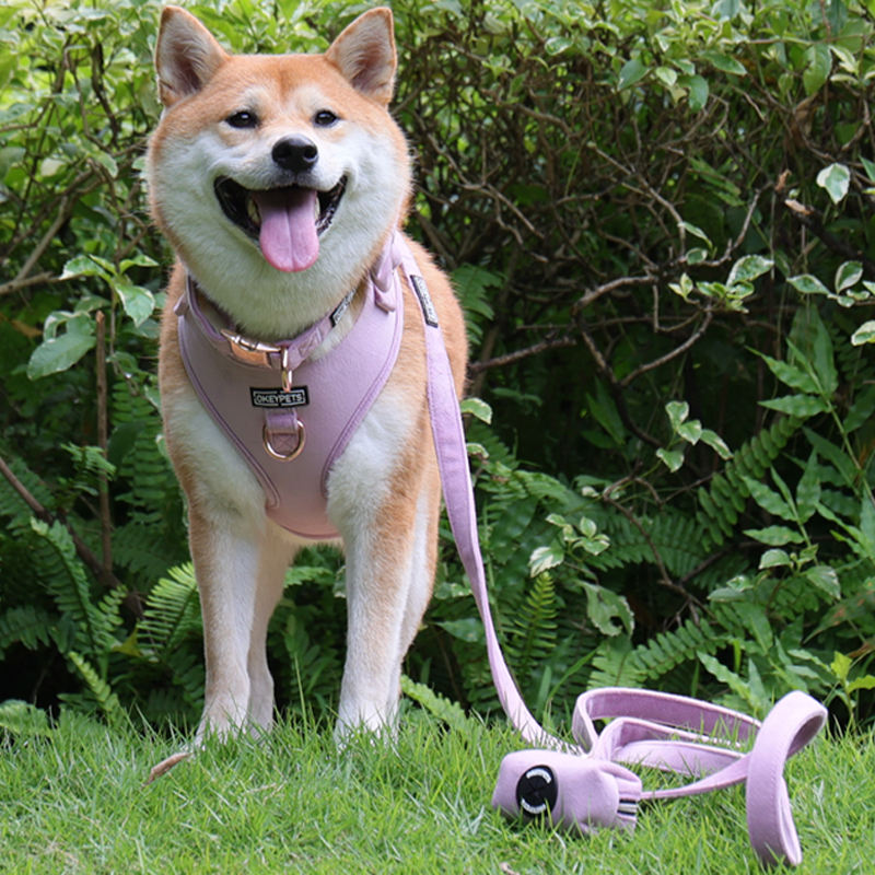 OKEYPETS-Ensemble harnais pour chien de luxe réglable en velours de haute qualité avec logo personnalisé, sans traction, laisse assortie