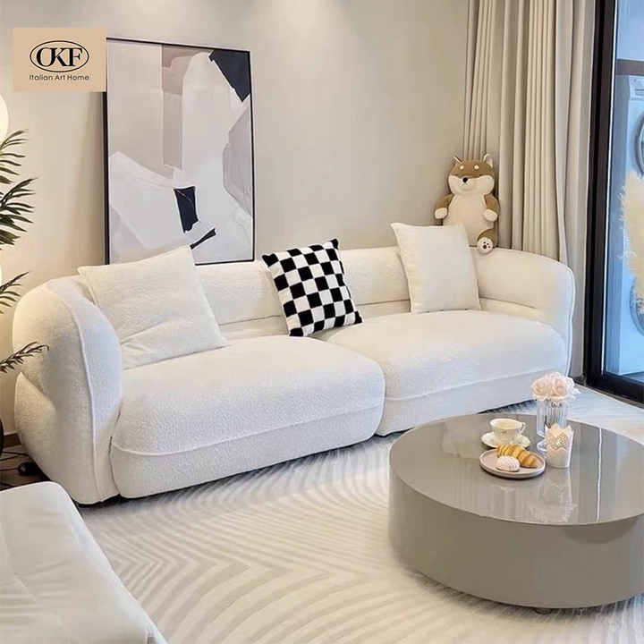 OKF Canapé sectionnel en velours blanc 4 places personnalisable Design moderne élégant et minimaliste pour villa bureau salon simple
