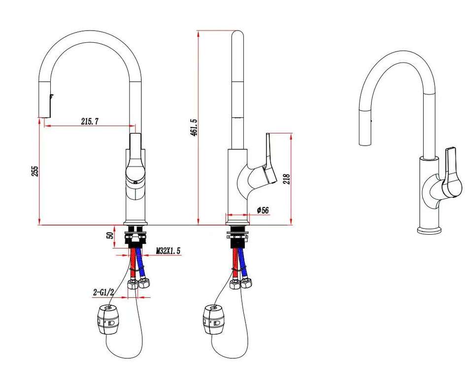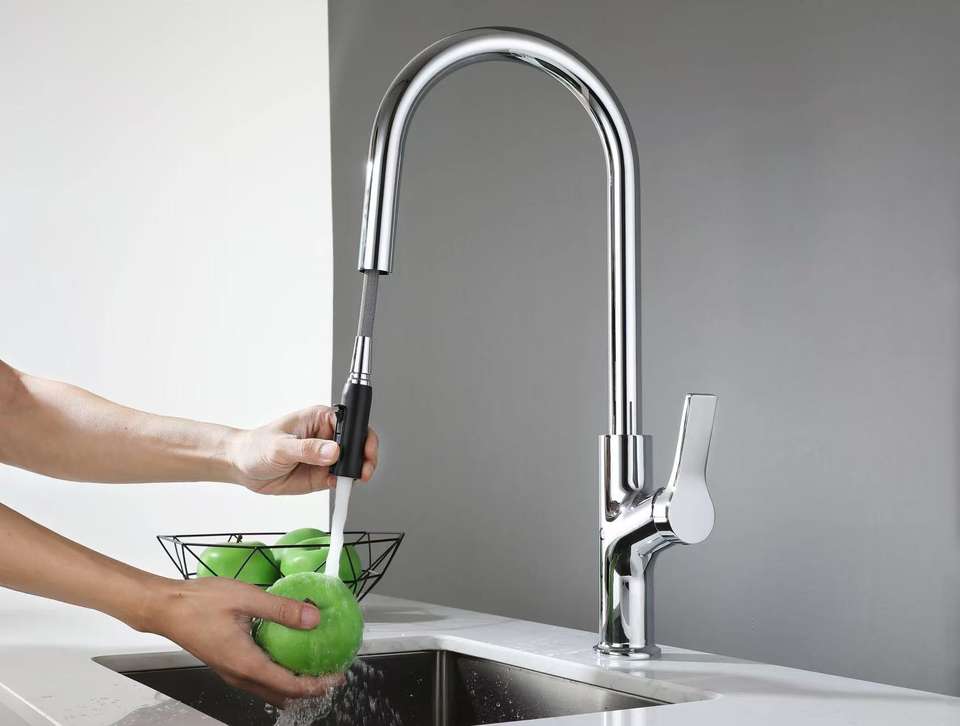 Installation facile, 360 degrés tournent, Robinets thermostatiques, Tirer vers le bas les robinets de cuisine, Flexible, Sens de robinet, Douchette amovible
