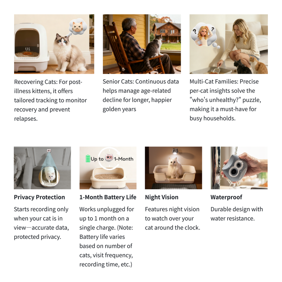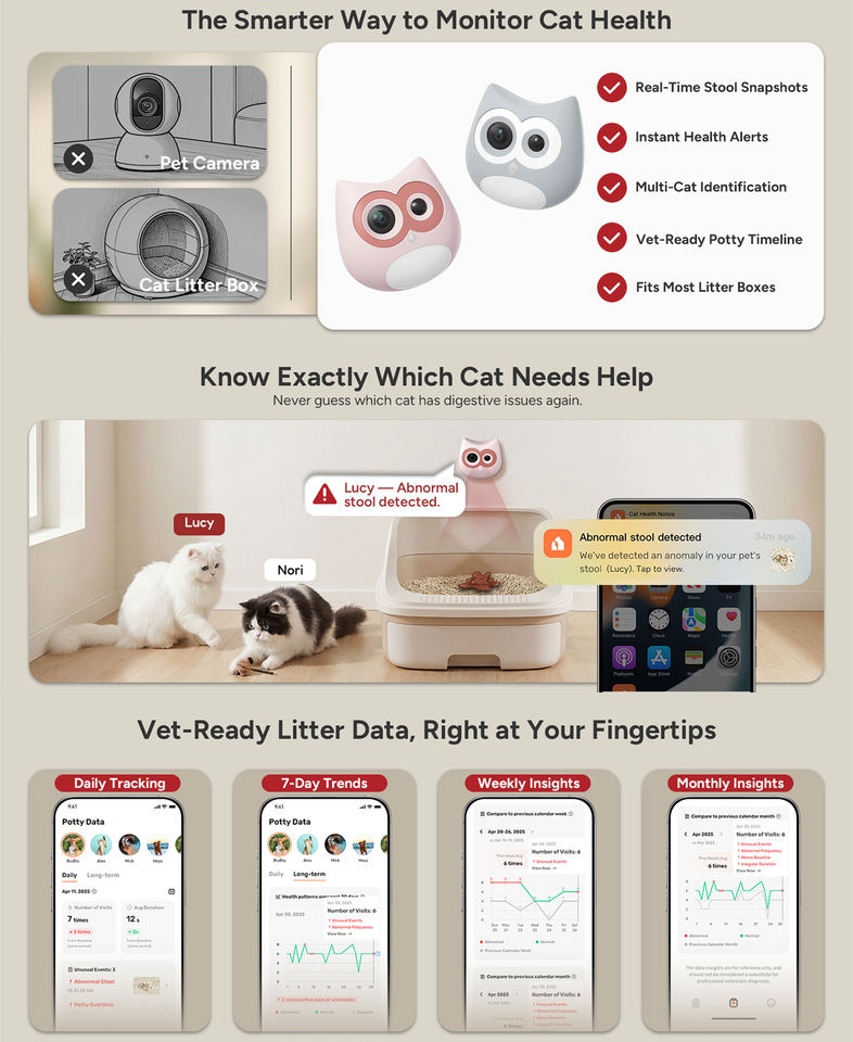 Nom du produit:Caméra de surveillance de la litière LitterLens AI+ pour le suivi de la santé de votre chat