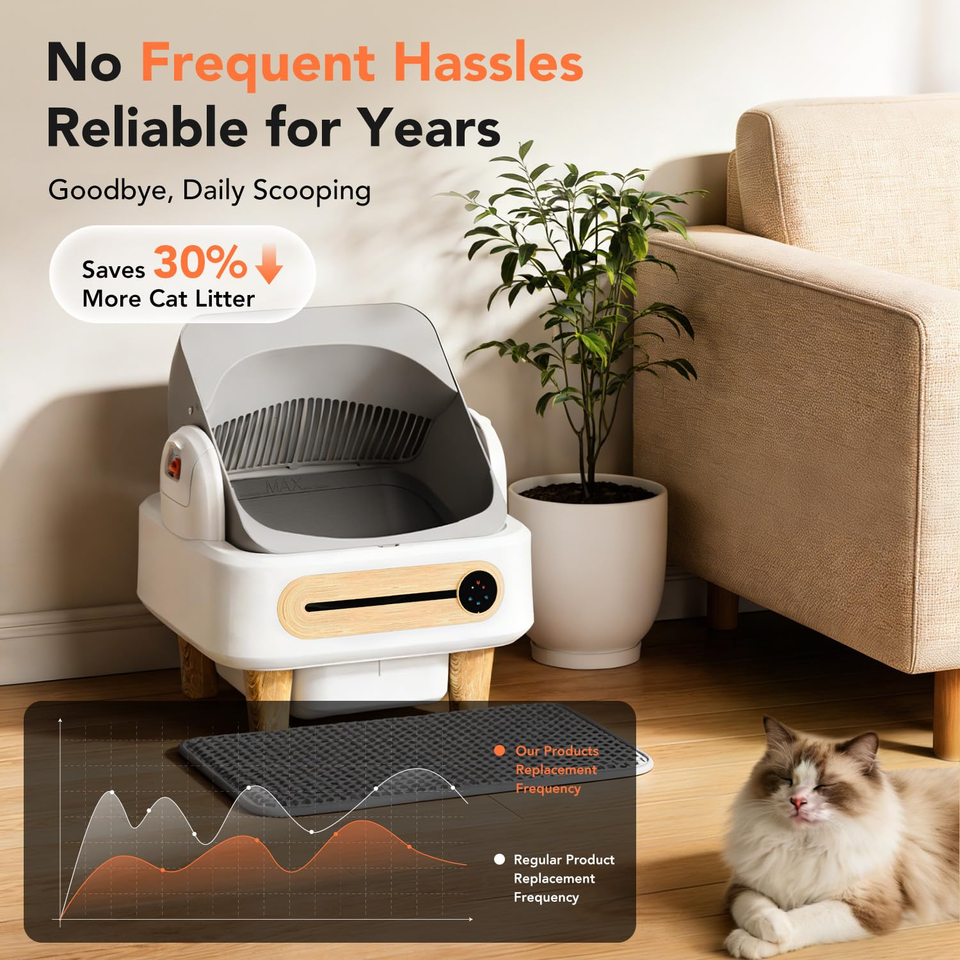 Litière automatique pour chat OKKPETS OEM, bac à litière robot autonettoyant pour plusieurs chats, ouverture supérieure, contrôle automatique par application, avec finition imitation bois