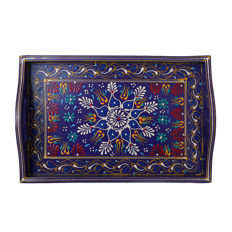 OKSQW Plateau de service rond classique en bambou fait à la main écologique personnalisé et assiettes en bois avec poignées décoratives uniques pour la nourriture