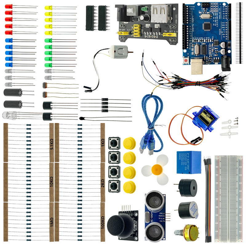 Kit de démarrage OKY1013-9 pour débutants avec capteurs de carte, LED, carte d'expérimentation, apprentissage de l'électronique et projets de bricolage