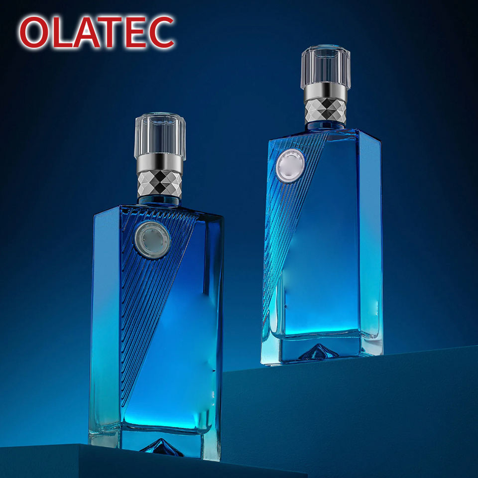 Bouteille en verre décorative OLATEC avec motifs gaufrés par estampage à chaud, coloration dégradée pour spiritueux, vins et champagnes haut de gamme