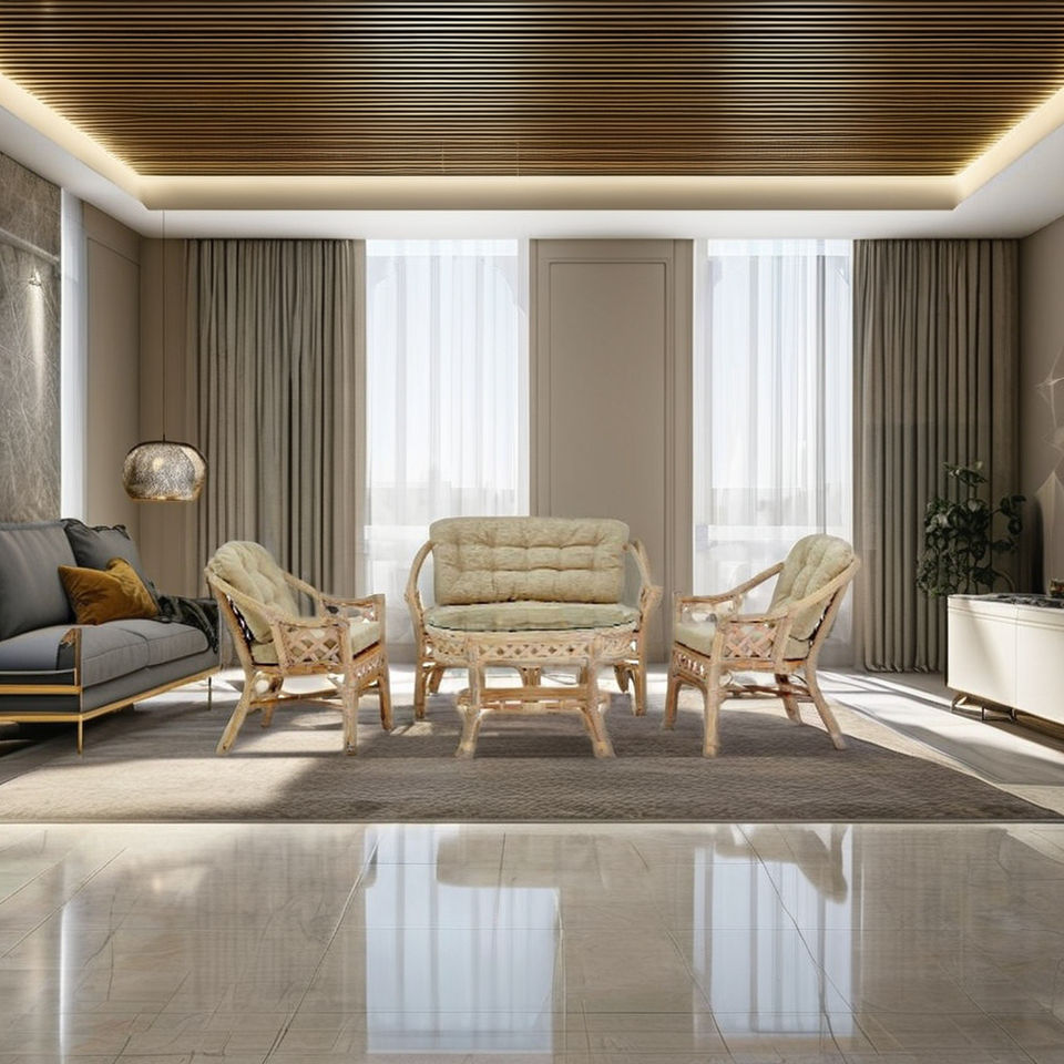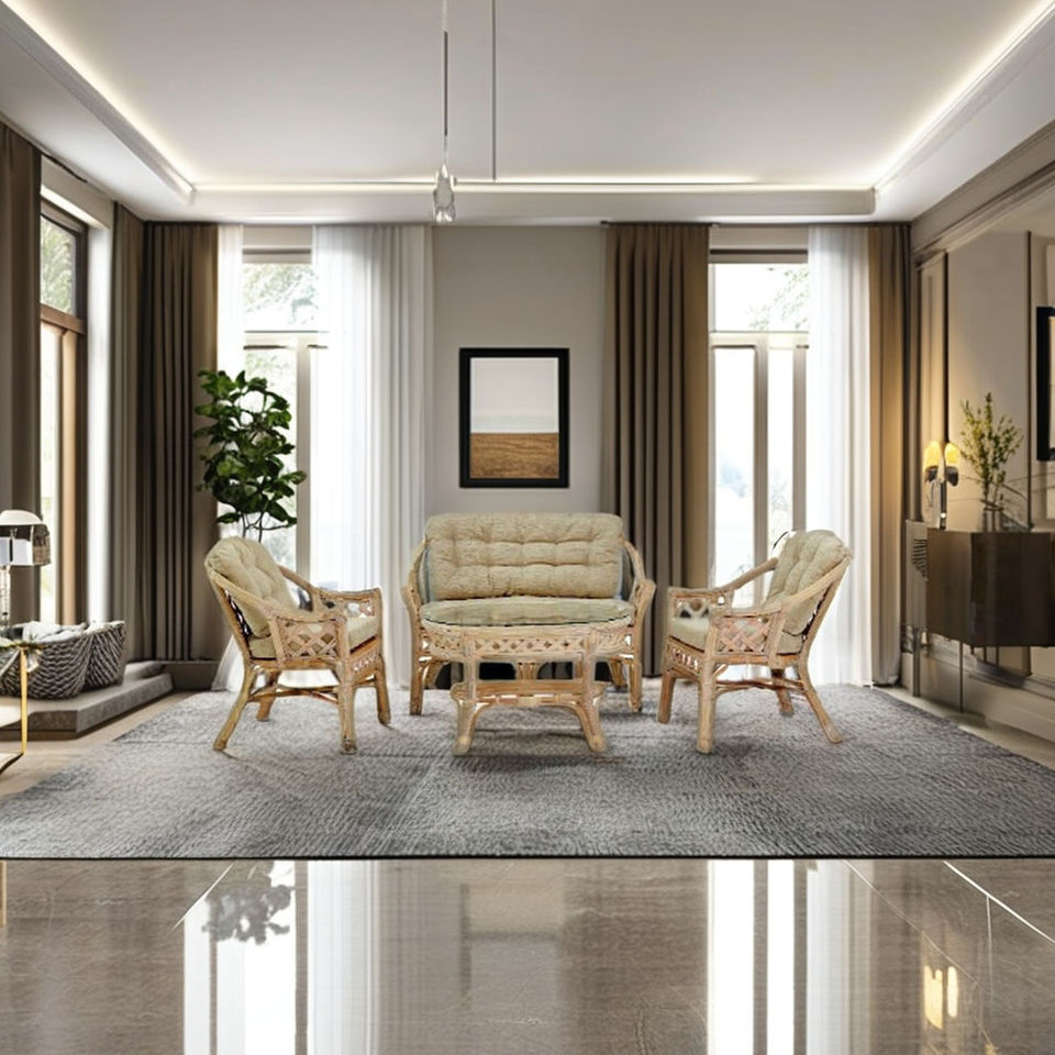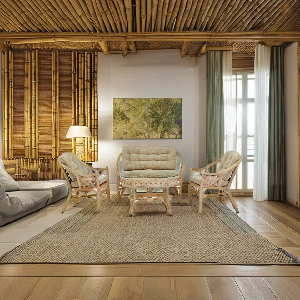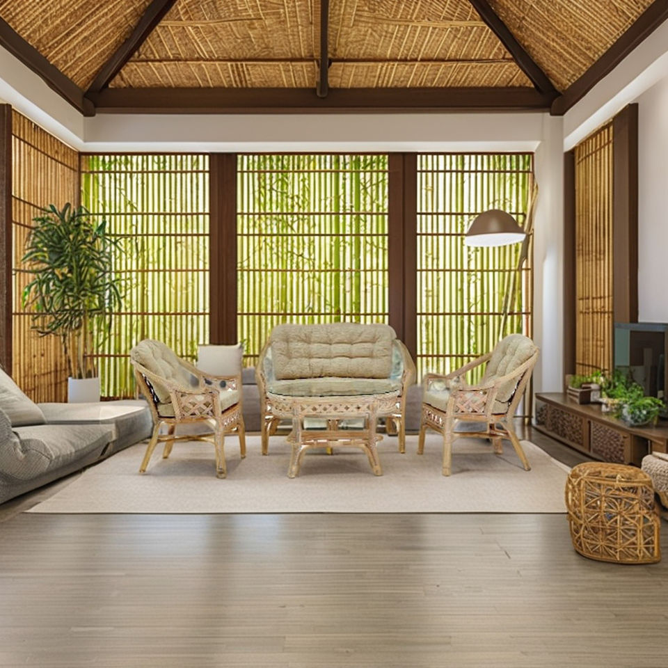 Ensemble canapé et table basse en rotin/osier au design minimaliste OMARA pour salon, villa, extérieur et bureau à domicile