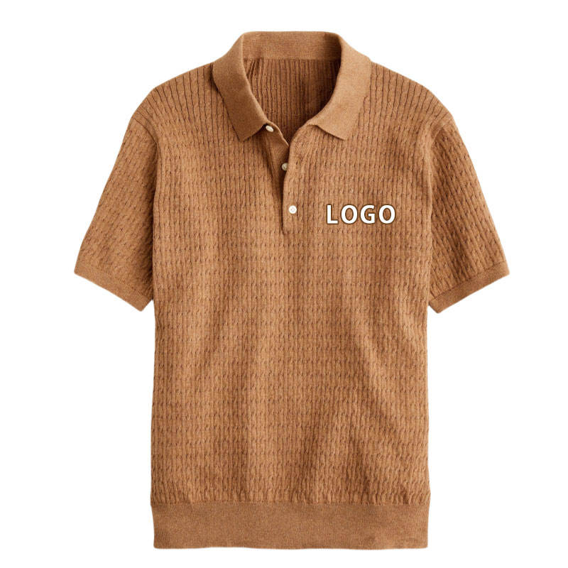 OME Custom Logo Wholesale 100% Cotton Polo Shirts Man Knitwear Short Sleeves High End Button Design Cable Pullover Solid Color