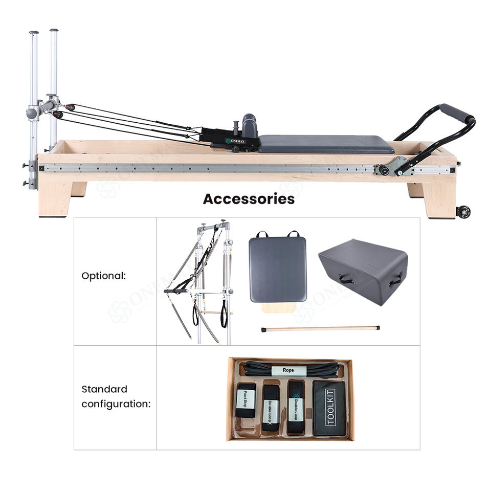 Reformer Pilates ONEMAX en bois d'érable à résistance réglable et à glissière complète pour la maison et le studio