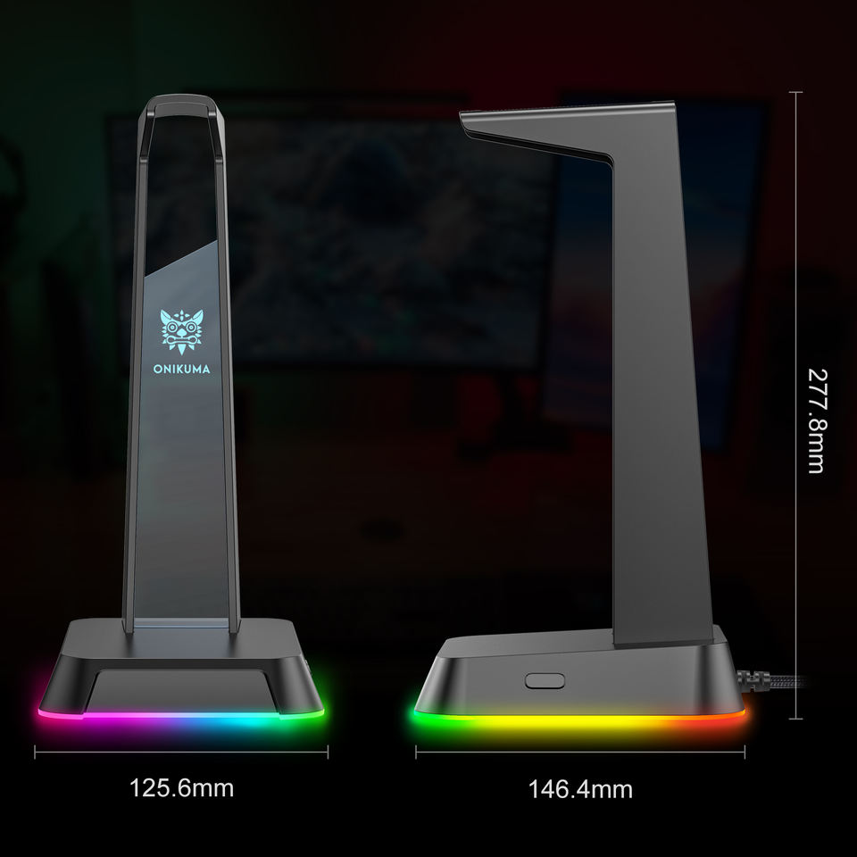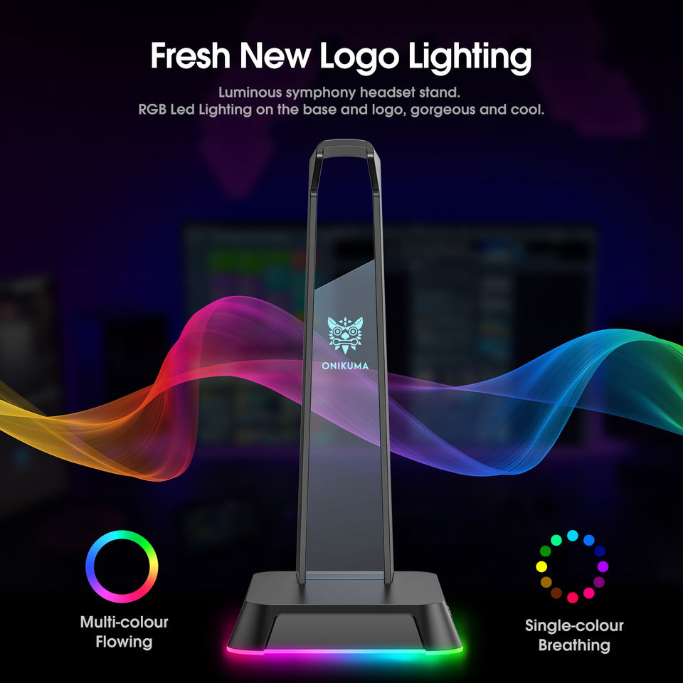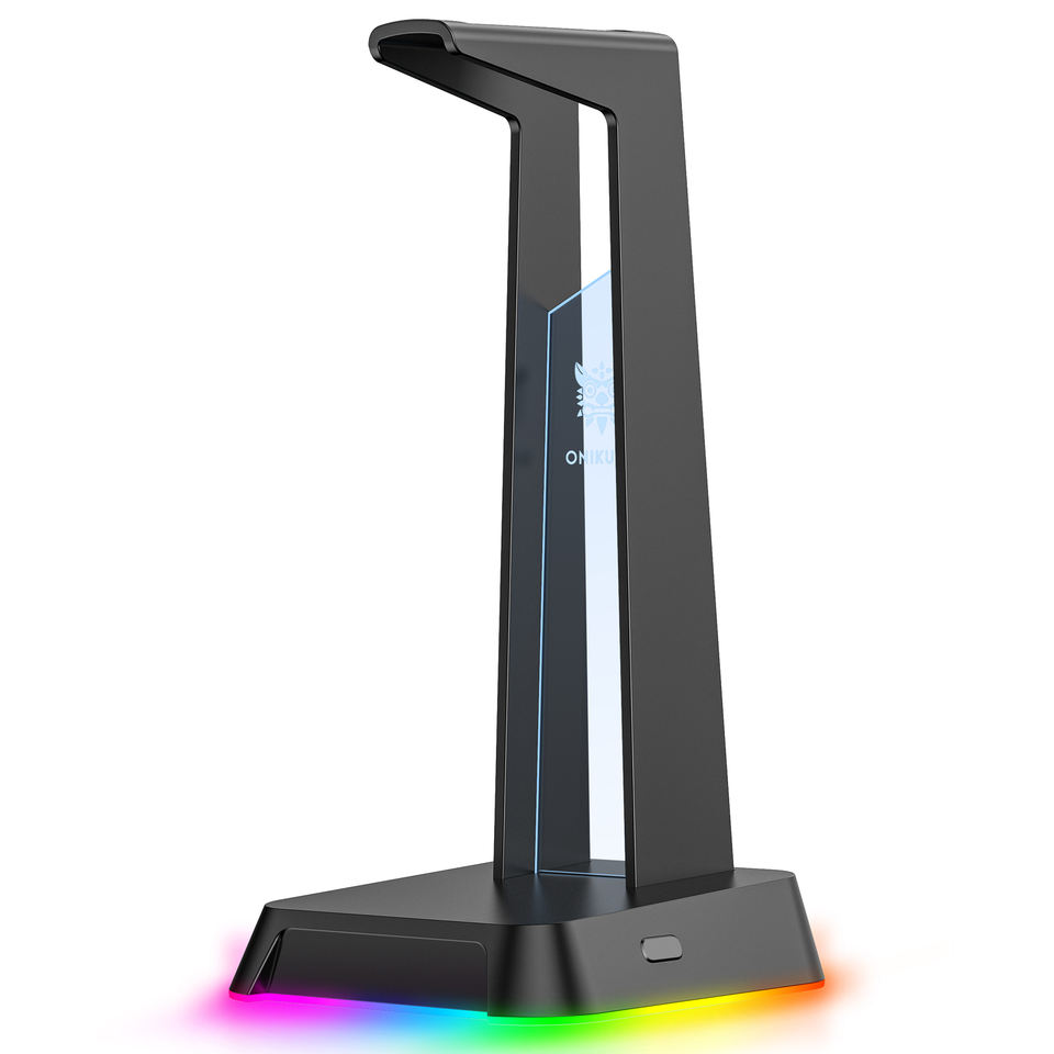 ONIKUMA LED Headphone Lights Stand USB Ports Black Holder for Headsets Gamers Gaming PC Accessories