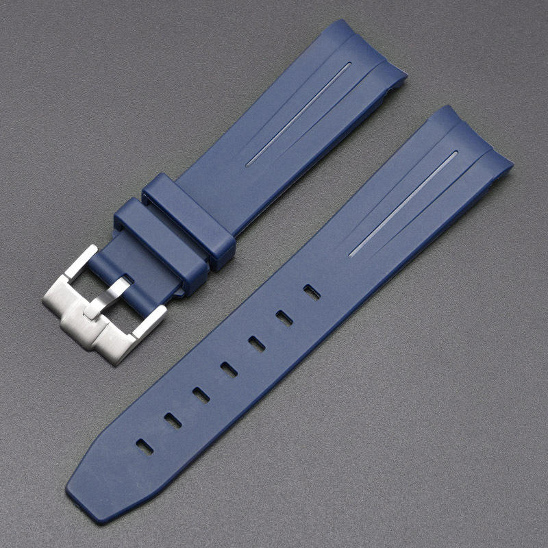 ONTHELEVEL-Bracelet en caoutchouc de silicone bleu marine, adapté aux montres, sous-déploiement, incurvé, de qualité supérieure