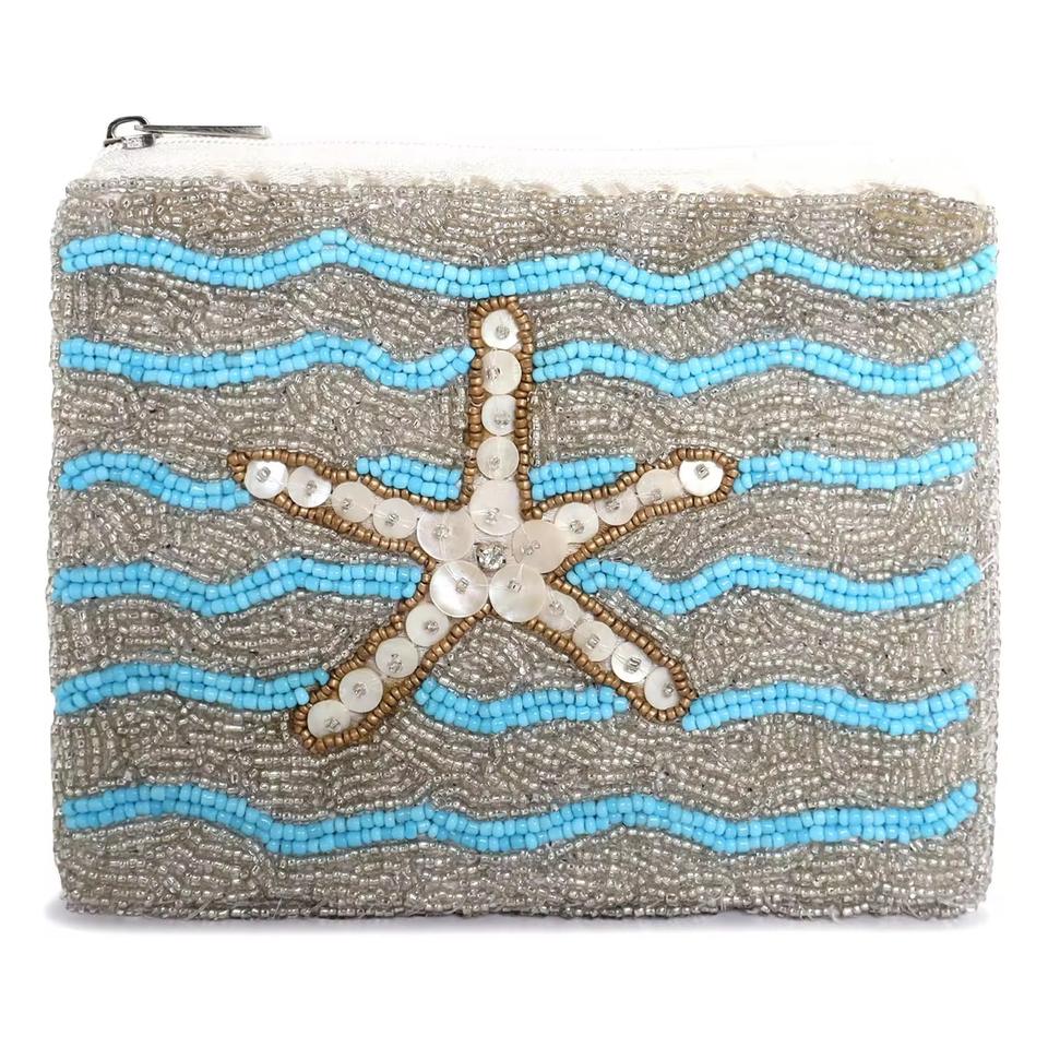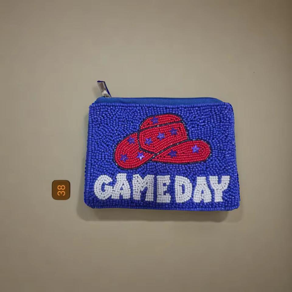 Porte-monnaie artisanal en perles brodées ORANGE, pochette personnalisée avec logo, perles de rocaille colorées, couleurs et tailles sur mesure