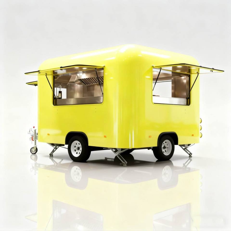 Remorque mobile de boulettes de citron jaune ORANGE RV Camion de nourriture délicieux Chariot de crème glacée Pizza chips de café Boisson juteuse Fourgon de nourriture