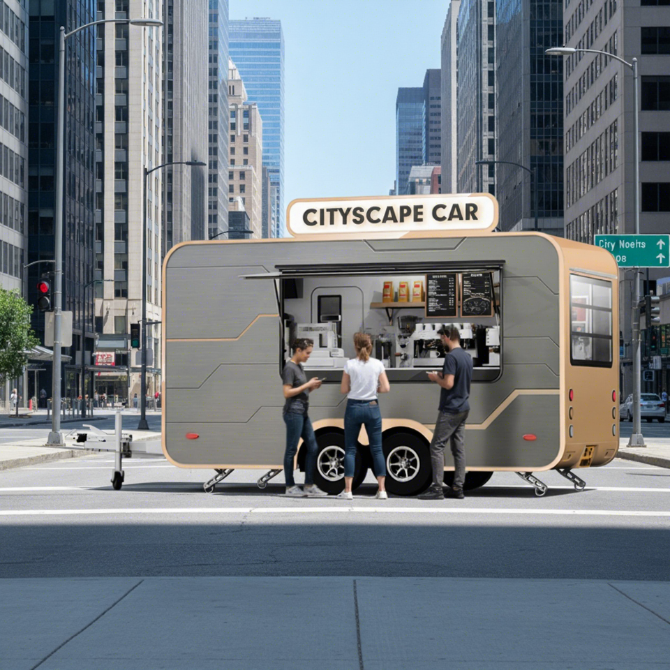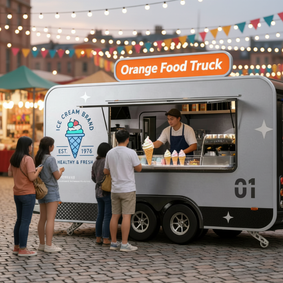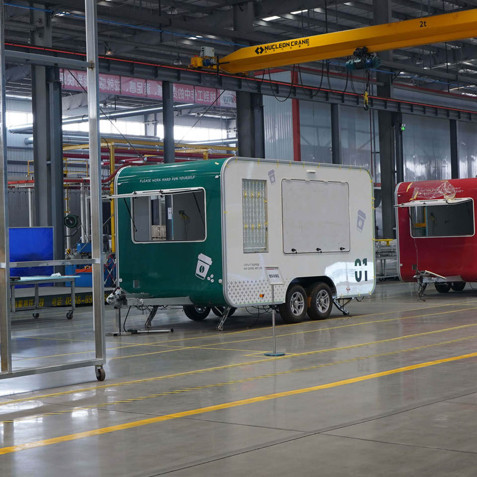 Remorque alimentaire multifonctionnelle en fibre de verre ORANGE T2 pour pizzas et hamburgers, chariot alimentaire, camionnette alimentaire