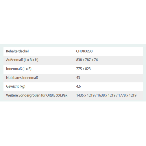 CHDR3230 Couvercle – Couvercle en plastique et tailles sur mesure pour conteneurs en vrac ORBIS XXL et applications lourdes