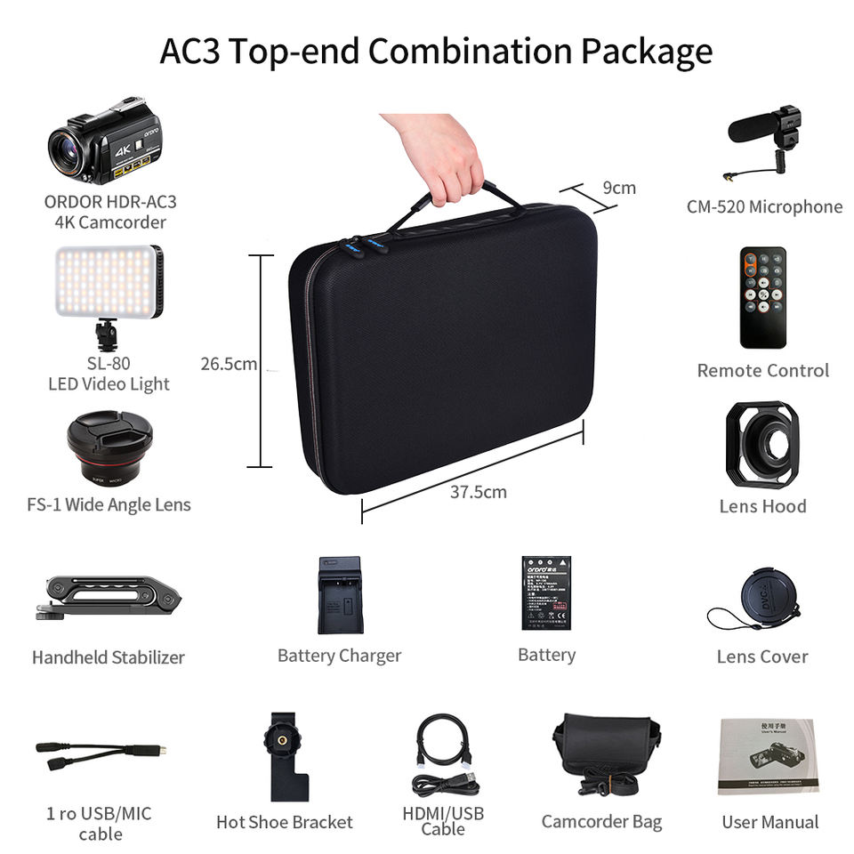 ORDRO Offre Spéciale AC3 4K HD Sortie Vision Nocturne Professionnel Vlog Caméra Vidéo pour Youtube Vlogging Live Streaming Caméra