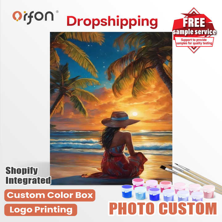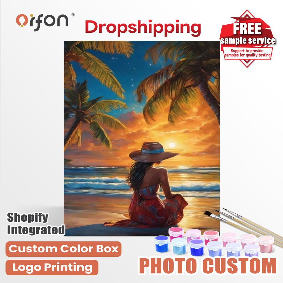 Kit de peinture par numéros ORFON Dropshipping Coconut Grove Beach Sunset Girl - Coucher de soleil sur la plage et art de la fille pour la décoration de la maison, bricolage