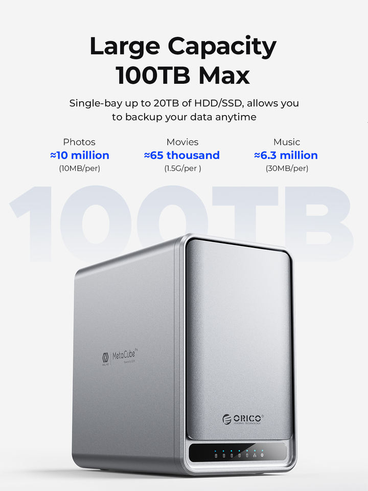 ORICO Serveur NAS personnel 2/5 baies Stockage en nuage Sauvegarde de données Partage de fichiers Accès à distance Stockage en réseau pour bureau à domicile