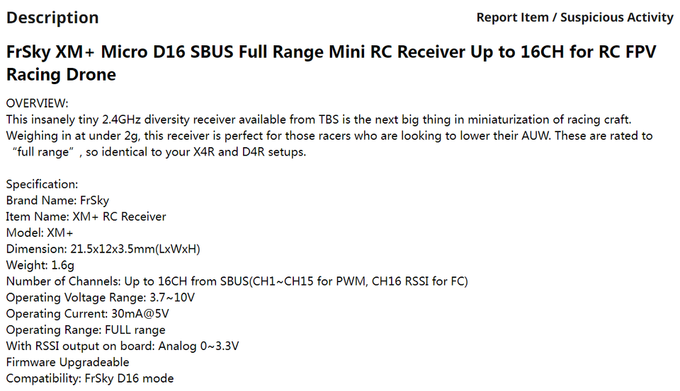 ORIGINAL FrSky XM Plus XM + D16 Mini Récepteur jusqu'à 16CH 1.6g Gamme Complète pour Micro Drone