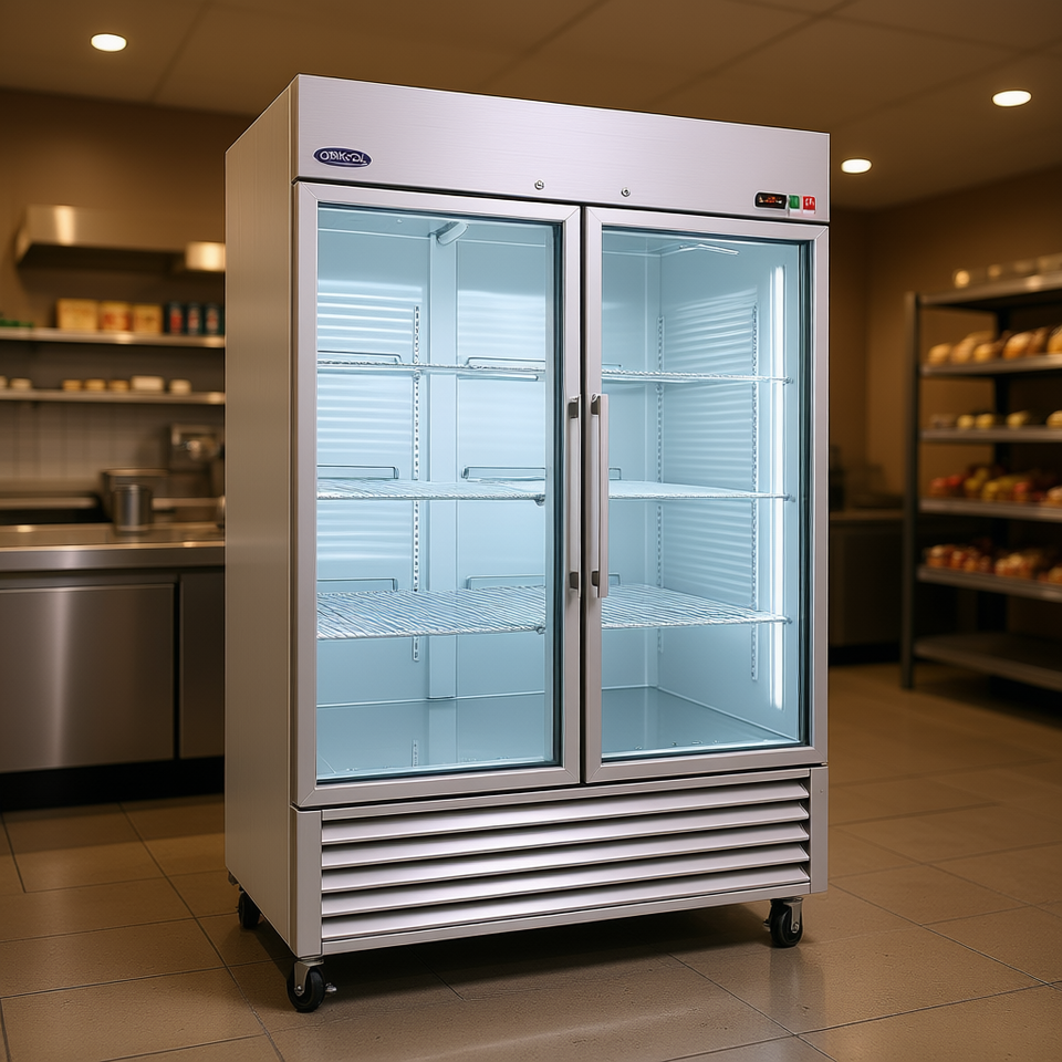 Congélateur commercial OriKool 49 pieds cubes en acier inoxydable à double porte, vitrine réfrigérée pour produits