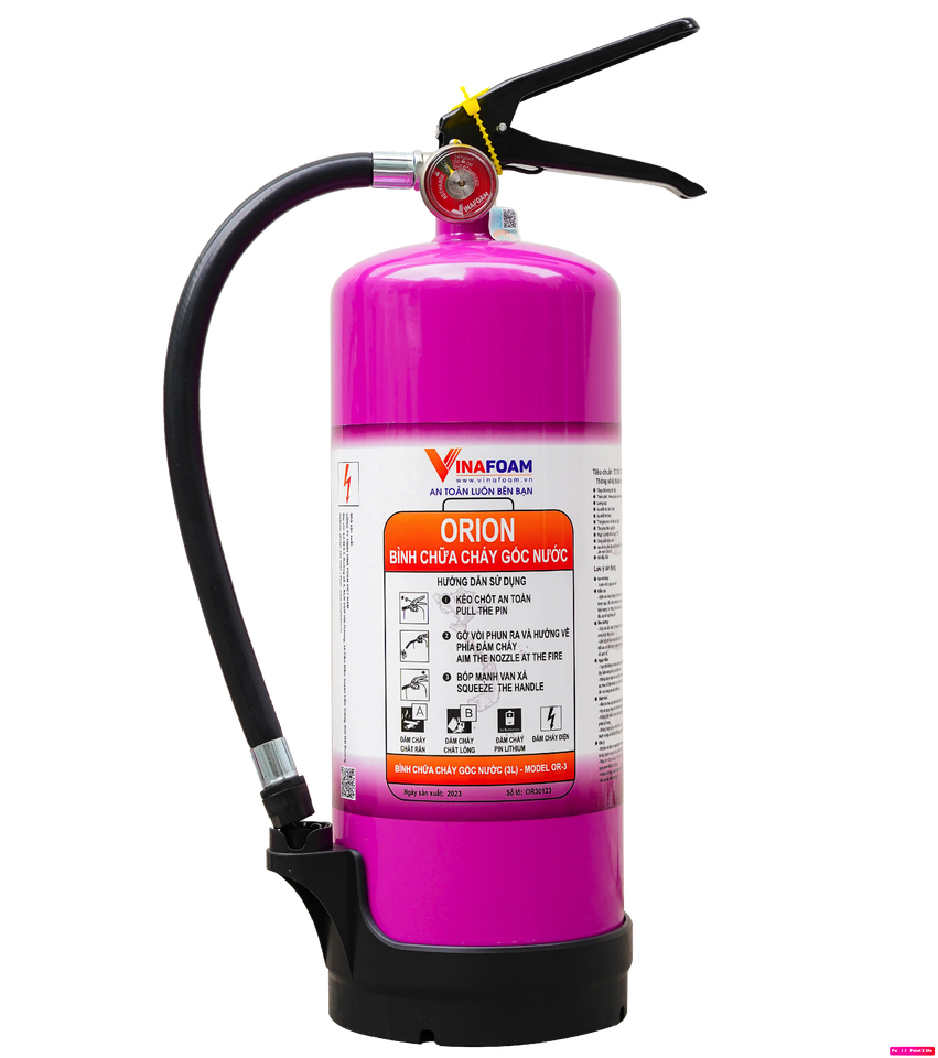 Extincteur à eau ORION 3 litres à batterie lithium pour les incendies domestiques, de garage, de véhicules électriques et les incendies de types A-B-C – Nouvelle technologie