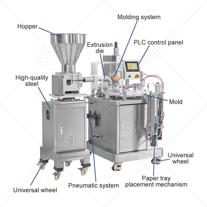 Extrusion de pâte, formation de coquille de tarte d'oeufs