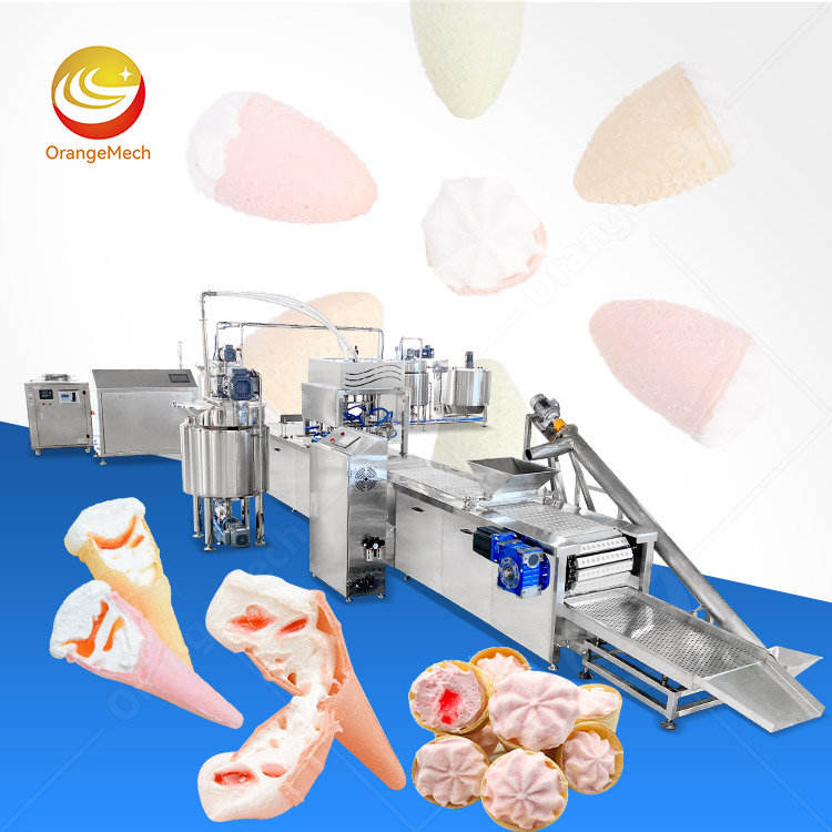 Ligne de production de guimauves fourrées ORME, machine industrielle automatique à cônes de coton et à crème glacée
