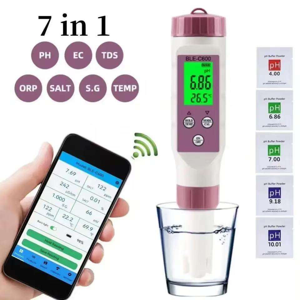 Analyseur d'eau numérique ORP/EC/Salinité/S.G/Température/PH/TDS, thermomètre, contrôle par application pour l'eau potable, la piscine, l'aquarium